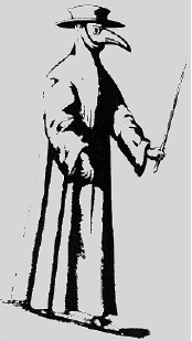 The Doctor's Robe Early in the 1600s, doctors began wearing a robe of toile-cirée,  linen coated with a wax paste. The idea was that the plague came from "venemous atoms" which infected salubrious air making it "miasmatic". These atoms were "sticky", clinging to things the way smoke or perfume clings to things. The waxed robe presumably provided no surface to cling to. The breathing tube beak was filled with materials imbued with perfume. A priest in Italy complained that the robe was useless against plague, saying it "is good only to protect one from the fleas which cannot nest in it". The friar (who came close to guessing the cause of the plague without knowing it) complained of being "devoured by fleas, armies of which nest in my gown."