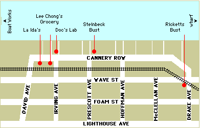 Locations for sites pictured on Cannery Row. Not necessarily the same as sites in the novel Cannery Row.
