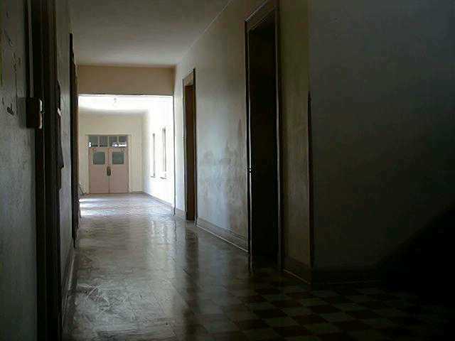 8. I've gone downstairs one flight, still looking west - photo lab on the right, classrooms through the double doors