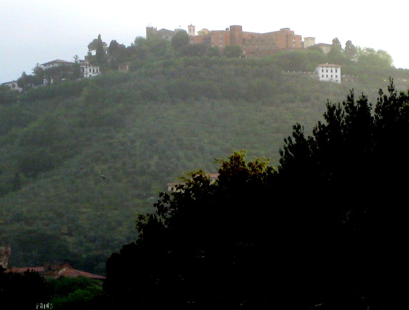Looming above Montecatini Terme is the village of Montecatini Alto, elev 300m. Montecatini Alto was a castle of romanesque origin. From about 1350 until 1905, Montecatini Terme was merely an extension of Montecatini Alto and was known as Bagni di Montecatini. In that year, they became two separate and distinct comunes. The were re-united in 1940. |