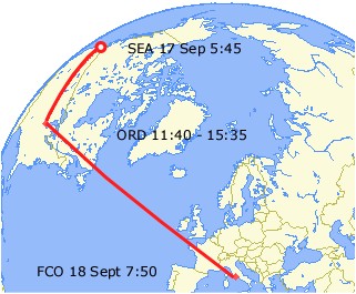 Day 1 (Mon, Sep 17): Flight from Seattle (SeaTac) to Rome (Leonardo da Vinci, Fiumicino)