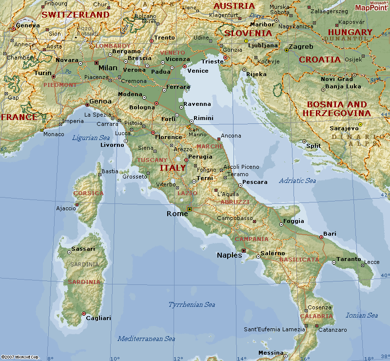 The Adventure Begins The ShuttleExpress van arrived at 2:30 am. Chris got up to see us off, why I don't know but it was nice of her. We were the only "guests" (i.e., passengers) on the trip to Sea-Tac, which we reached about 3:00. There we made the unhappy discovery that the American Airlines check-in desk wouldn't even open until 4:00. So we sat and twiddled our thumbs in an empty airport for an hour. Thank you, ShuttleExpress. When things finally did get moving they went pretty well. We got our boarding passes and checked our bags just fine. We checked a suitcase each and shared a single carry-on. Karen "wore" her perennially useful red bag, and I carried a small black one with all my electronic devices and a Brother Cadfel novel to read. Even the Transportation Safety Agency folks didn't hassle us too much. Our flight for Chicago left on time at 5:45 PST and arrived on time too, 11:40 CST. We spent about four hours at O'Hare. Had a "Chicago style" hot dog, prepared by a very jolly Mexican: Vienna beef franks, onions, tomato, relish, mustard, spices and an extremely hot chili pepper. And a can of Classic Coke to flush it down with. The afternoon flight for Rome took off promptly at 3:35. When we made the original travel arrangements with Lyon Travel we were assigned to seats 28 H and J (right side, looking forward). The tickets actually issued put us in seats 30 A and 32 B. The lady sitting next to me agreed to trade with Karen, so were able to sit together in 30 A and B. The flight was uneventful. Karen slept and, as usual, I didn't. |