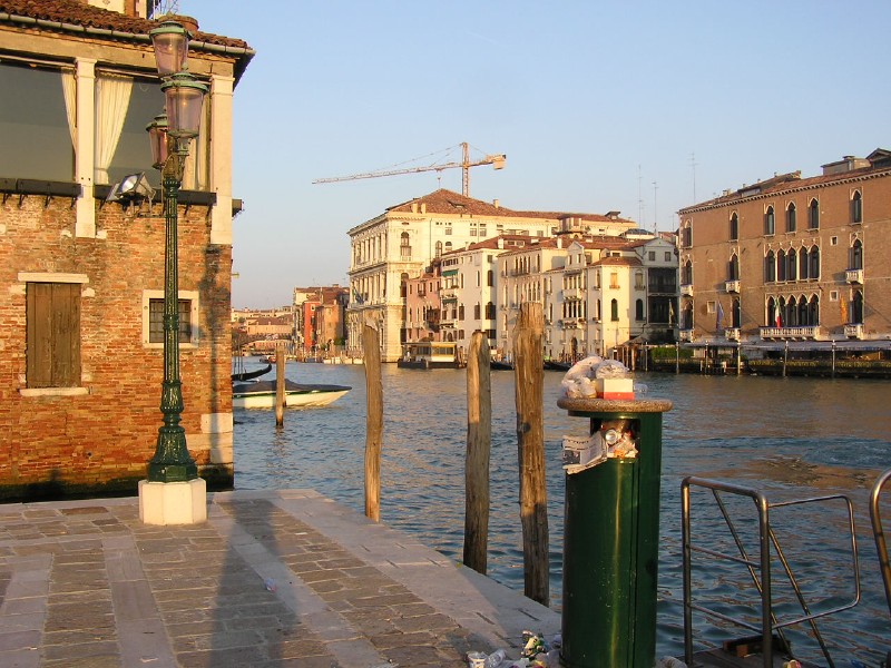 (1) Looking up the canal (in the right of photo #1) is Palazzo Pisani-Gritti. The biggest building (with the crane above it) is the Palazzo della Ca Grande. In between these is the Palazzo Barbarigo. (2) Directly across from our stop (right 1/3 of photo #1), is the Palazzo Contarini-Fasan. To the left of that (right 1/2 of the photo) is the Palazzo Ferro-Fini. (3) In the middle of the photo is Palazzo Tiepolo, the tower is the Campanile in the Piazza San Marco